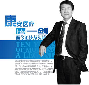 康安醫(yī)療座落于美麗的鳳凰城唐山,是一家專業(yè)致力于經(jīng)營(yíng)醫(yī)療設(shè)備、醫(yī)療器械、醫(yī)療耗材和康復(fù)保健用品的醫(yī)療企業(yè)。多年以來(lái),在社會(huì)各界朋友的支持下,康安醫(yī)療器械公司實(shí)現(xiàn)了快速的發(fā)展。在此,謹(jǐn)代表康安醫(yī)療全體員工感謝廣大用戶對(duì)康安醫(yī)療產(chǎn)品的信任,感謝我們的合作伙伴對(duì)我們工作的支持,我們真誠(chéng)的希望大家在以后的時(shí)間里能夠一如既往的信賴和支持康安醫(yī)療!